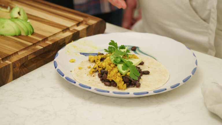 Each episode features plant-based dishes created from their Malibu garden, from roasted butternut squash soup to mushroom and Swiss chard pasta, and this protein-packed breakfast scramble from episode 3, “Beans & Beginnings.” Add other ingredients to the scramble, like avocado or salsa to add variety.